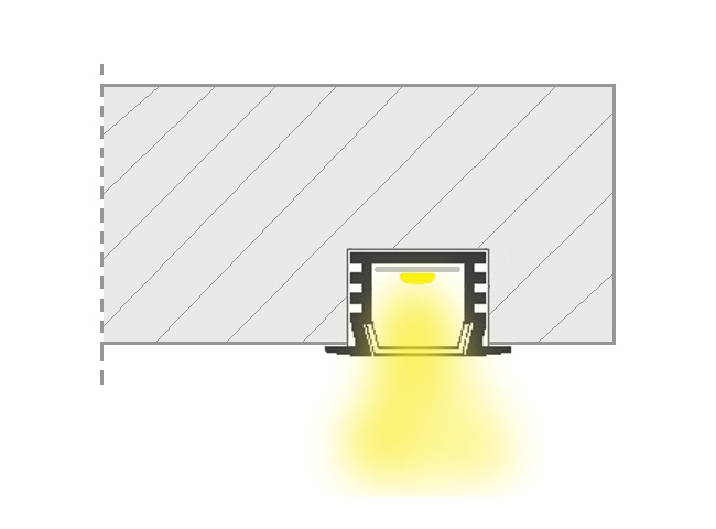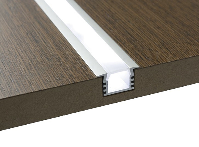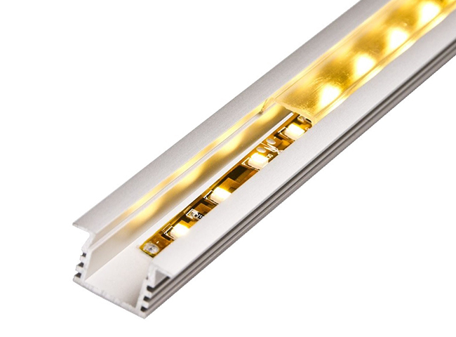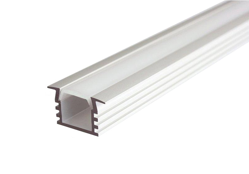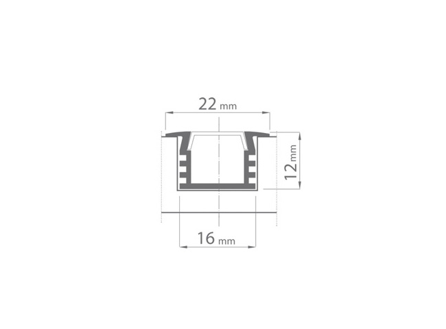 Врезной алюминиевый профиль для светодиодной ленты для установки во фрезерованные пазы. Используется с матовым или прозрачным экраном (рассеивателем) и заглушками. Размер 2000х22х12 мм.