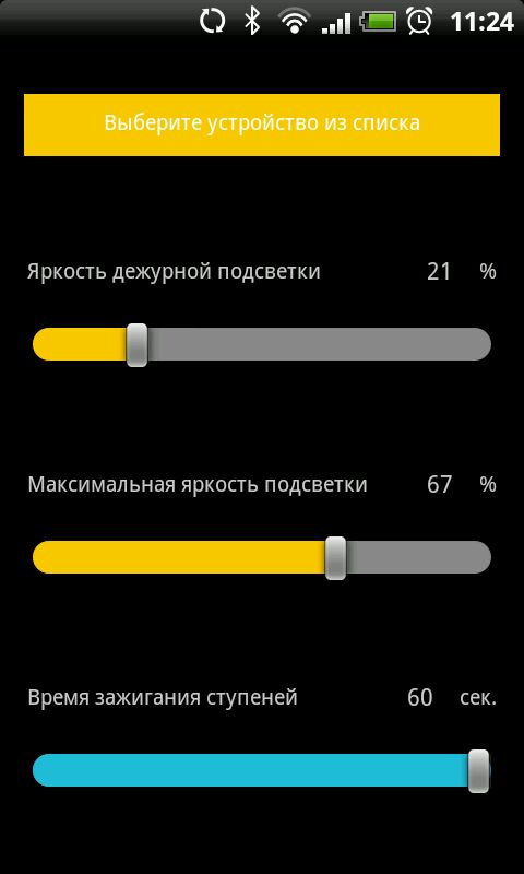 Настройте яркость дежурной подсветки и яркость основной подсветки в меню "Установки";