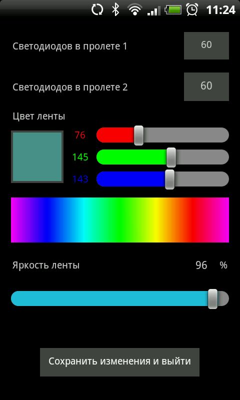 При использовании адресуемой RGB-ленты в качестве "бегущего огня" настройте параметры в меню "RGB лента".